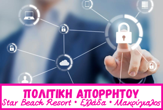 Ο Resort διατηρεί στο ακέραιο τις ρυθμίσεις του νόμου περί προστασίας των προσωπικών δεδομένων και δημοσιότητας των δημοσίων δεδομένων ως προς την διαχείριση των προσωπικών δεδομένων που δόθηκαν κατά την διάρκεια της κράτησης και της σύναψης συμβάσεως. Τα αποθηκευμένα δεδομένα διαχειριζόμαστε με εχεμύθεια και προσεκτικά. Δεν παραχωρούμε δεδομένα σε τρίτο πρόσωπο.